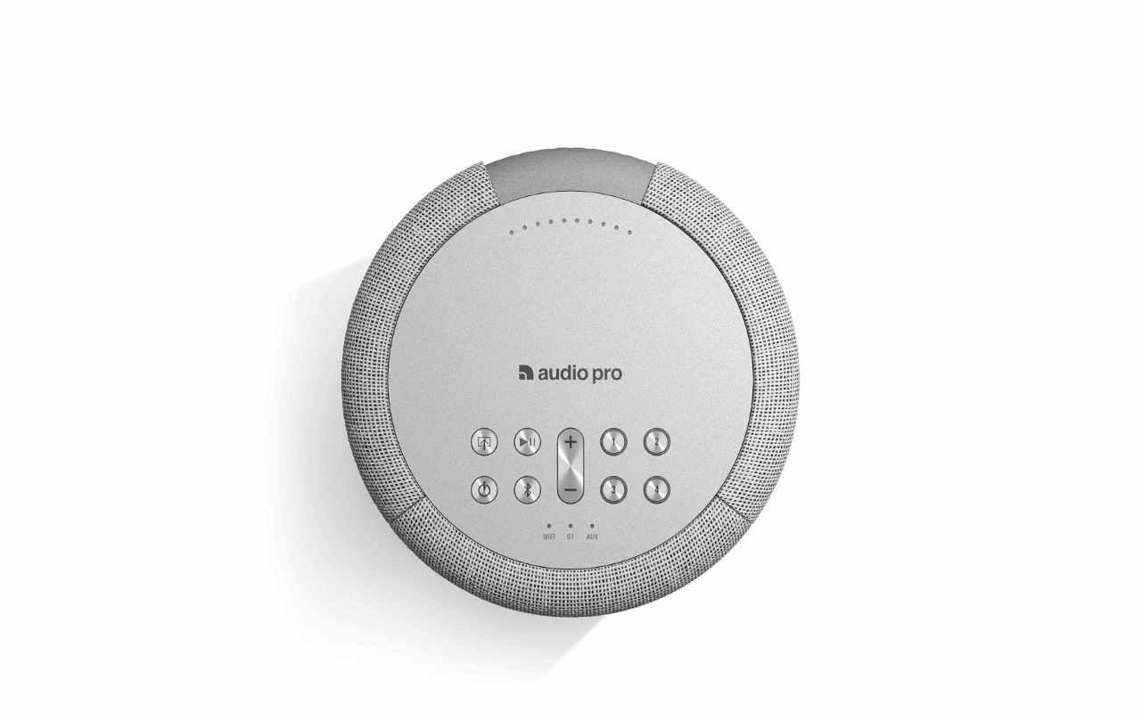 Audio Pro A10 är en kompakt, trådlös högtalare som kan integreras i 3-fas ljusskenesystem för en sömlös och stilren ljudinstallation.
