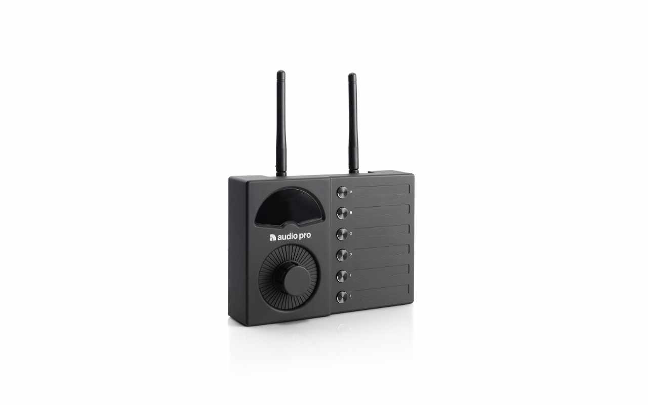 Med den trådlösa volymkontrollen justerar du enkelt ljudnivån i varje zon.